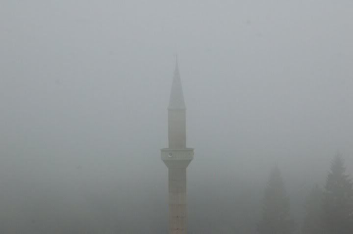 In the evening, after dinner (meat and potatoes, rice, beans and eggplant mush) we went on another walk. The clouds by this time had already set in and everything seemed as if you were looking through fogged glasses. It was really beautiful! We stopped by the bakery and lucky for us they were just taking out a fresh batch of special Ramazan bread. They wrapped it for us in newspaper and a plastic bag and before we got back to the otel, half of it was already gone- deeelicious!